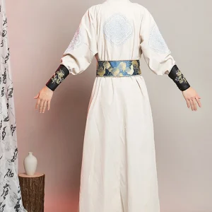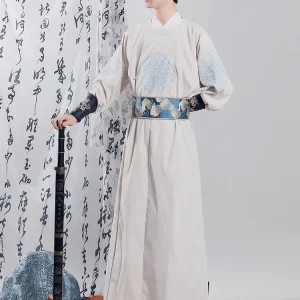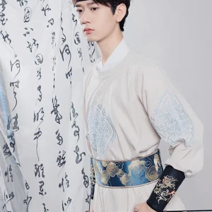 The silhouette of “Sea Loong” is inspired by the traditional Tang Dynasty round-collar robe, known for its straightforward yet dignified structure. This design has been cherished through the centuries for its balanced blend of functionality and aesthetics, suitable for both stately affairs and the fluid movements of martial arts.